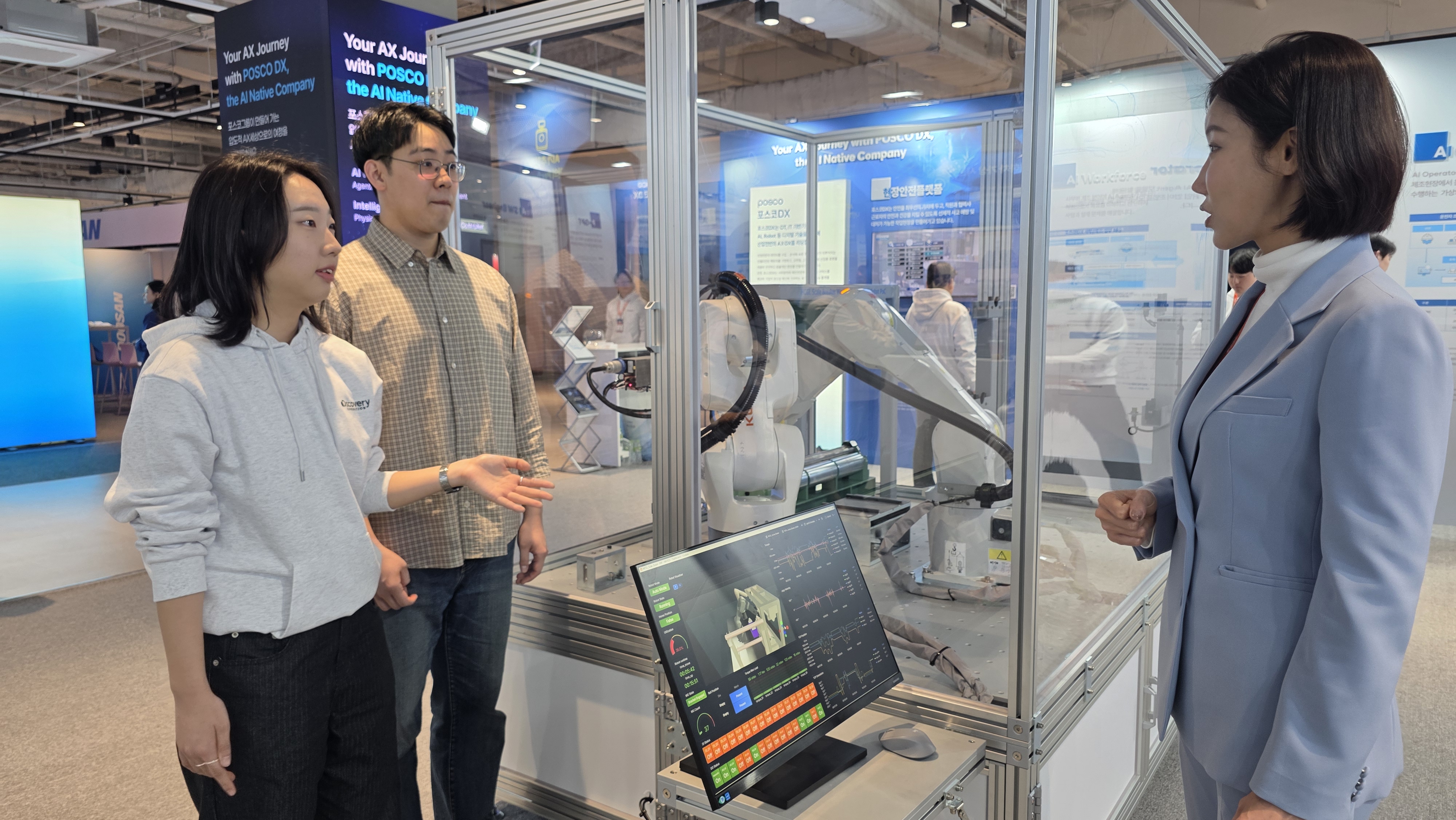 포스코DX 전시관은 “Your AX Journey with POSCO DX, the AI Native Company”를 주제로, 회사의 비전과 안전플랫폼을 소개하는 『포스코DX Overview』, AI 기반 업무 혁신을 담은 『AI Workforce』, 산업현장의 AXㆍDX기술을 체험해 볼 수 있는 『Intelligent Factory』 3개 테마존으로 구성돼 AI 분야에서의 핵심 기술역량을 선보인다.